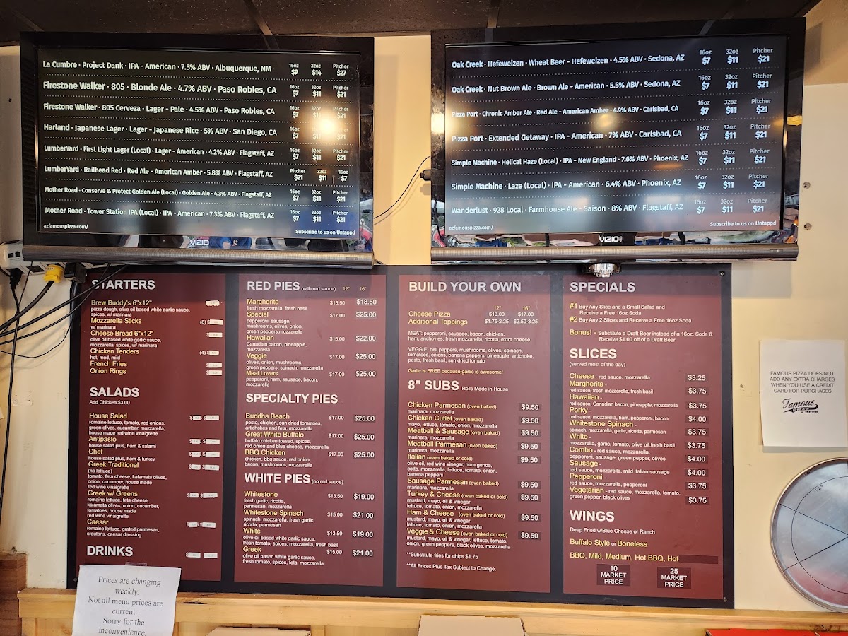 Welcome to Famous Pizza & Beer, nestled in the stunning Village of Oak Creek, Sedona, AZ. This charming pizza restaurant offers more than just delightful dishes; it’s a culinary experience set against the breathtaking backdrop of Sedona’s red rocks. With a casual and inviting atmosphere, Famous Pizza & Beer is the perfect spot to unwind after a day of exploring this picturesque area.